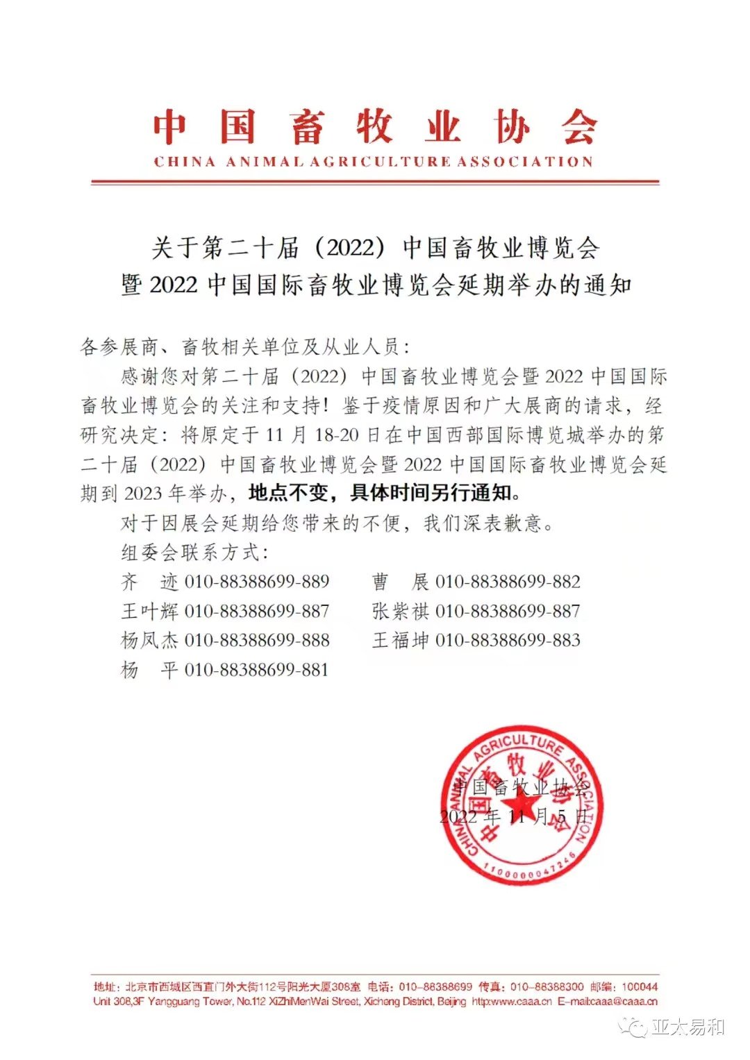 第二十屆(2022)中國畜牧業(yè)博覽會暨2022中國國際畜牧業(yè)博覽會延期到2023年舉辦
